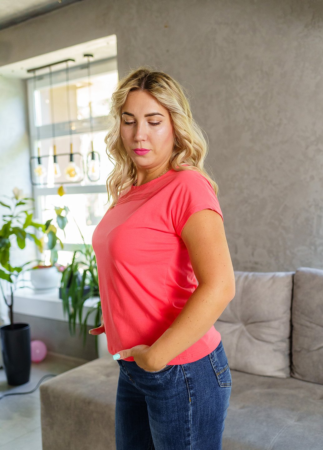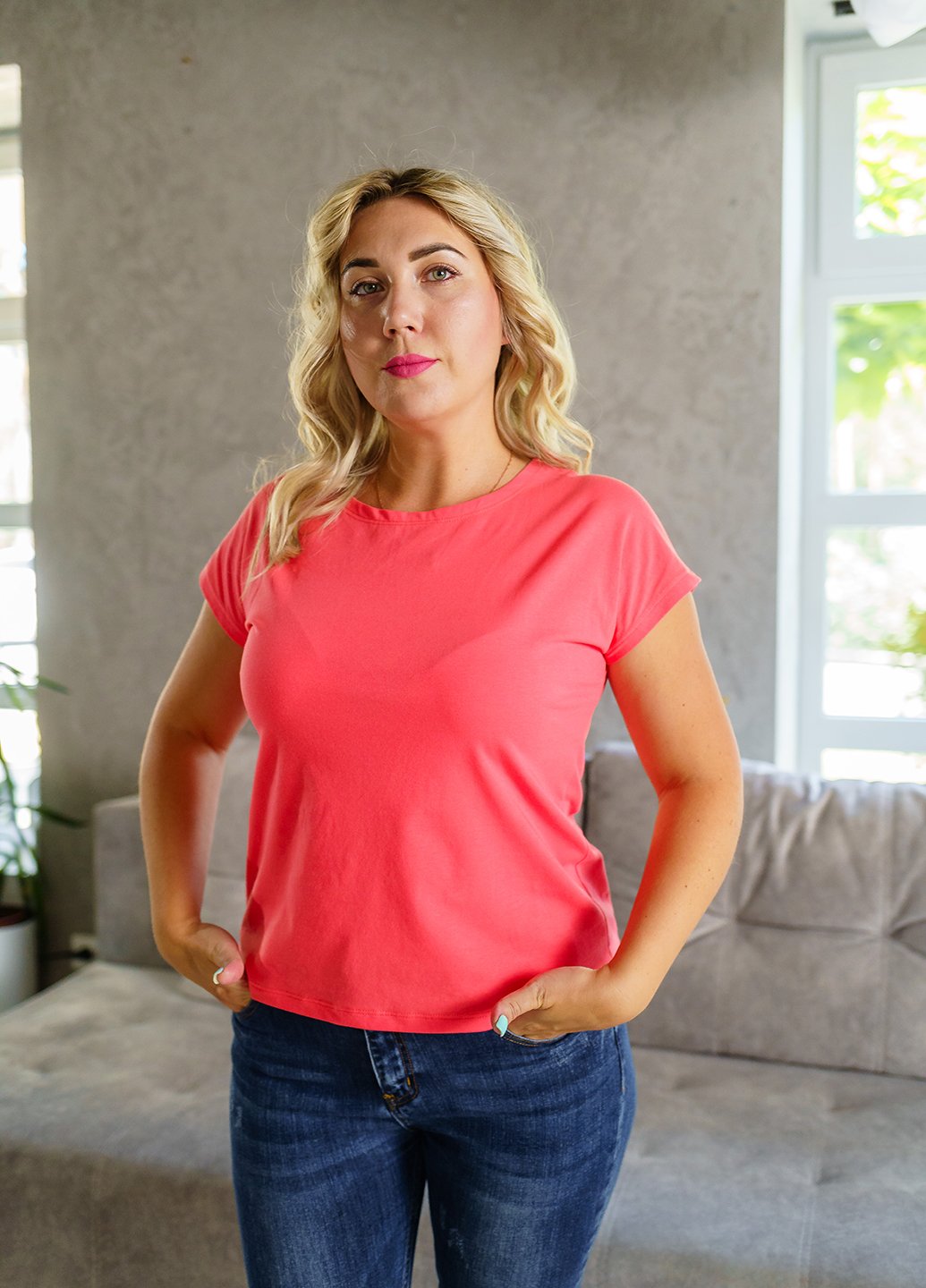 Футболка Бавовна 95% Еластан 5% 070230187_кораловий Трикомир Україна