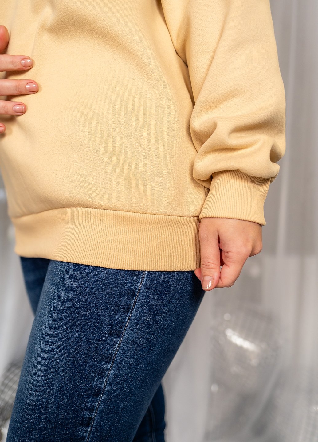 Стильний та комфортний жіночий світшот із м’якої тринитки з начосом — ідеальний вибір для прохолодної погоди. Теплий внутрішній шар приємний до тіла та добре зберігає тепло, а щільне полотно забезпечує довговічність і гарну посадку.