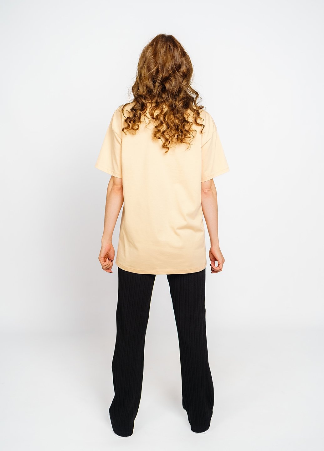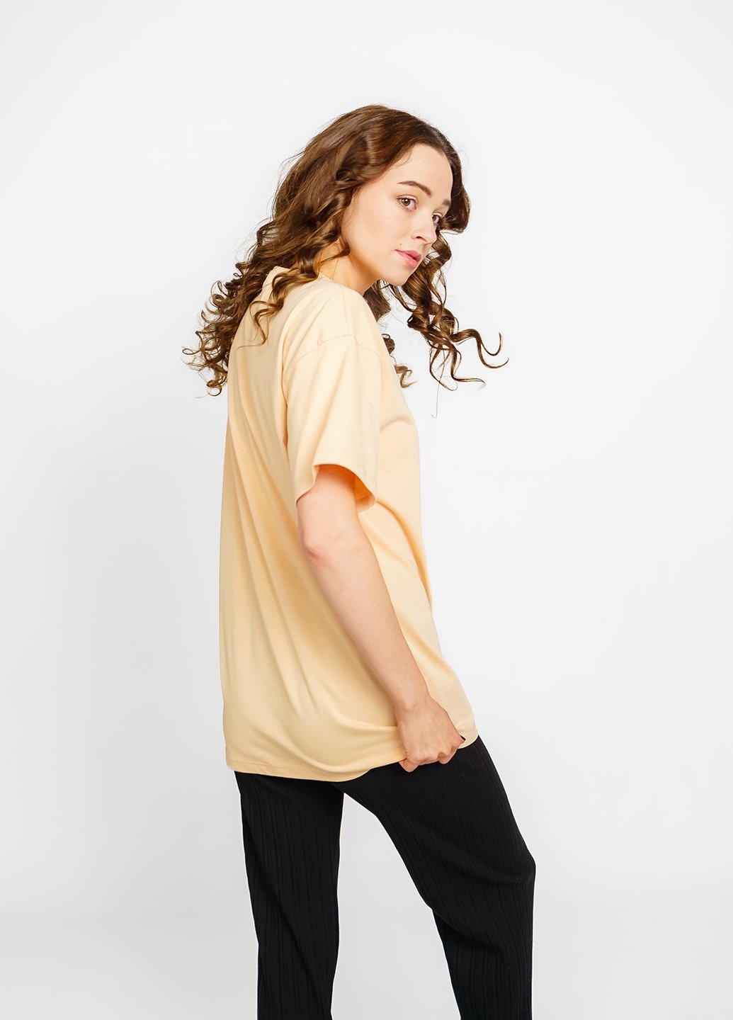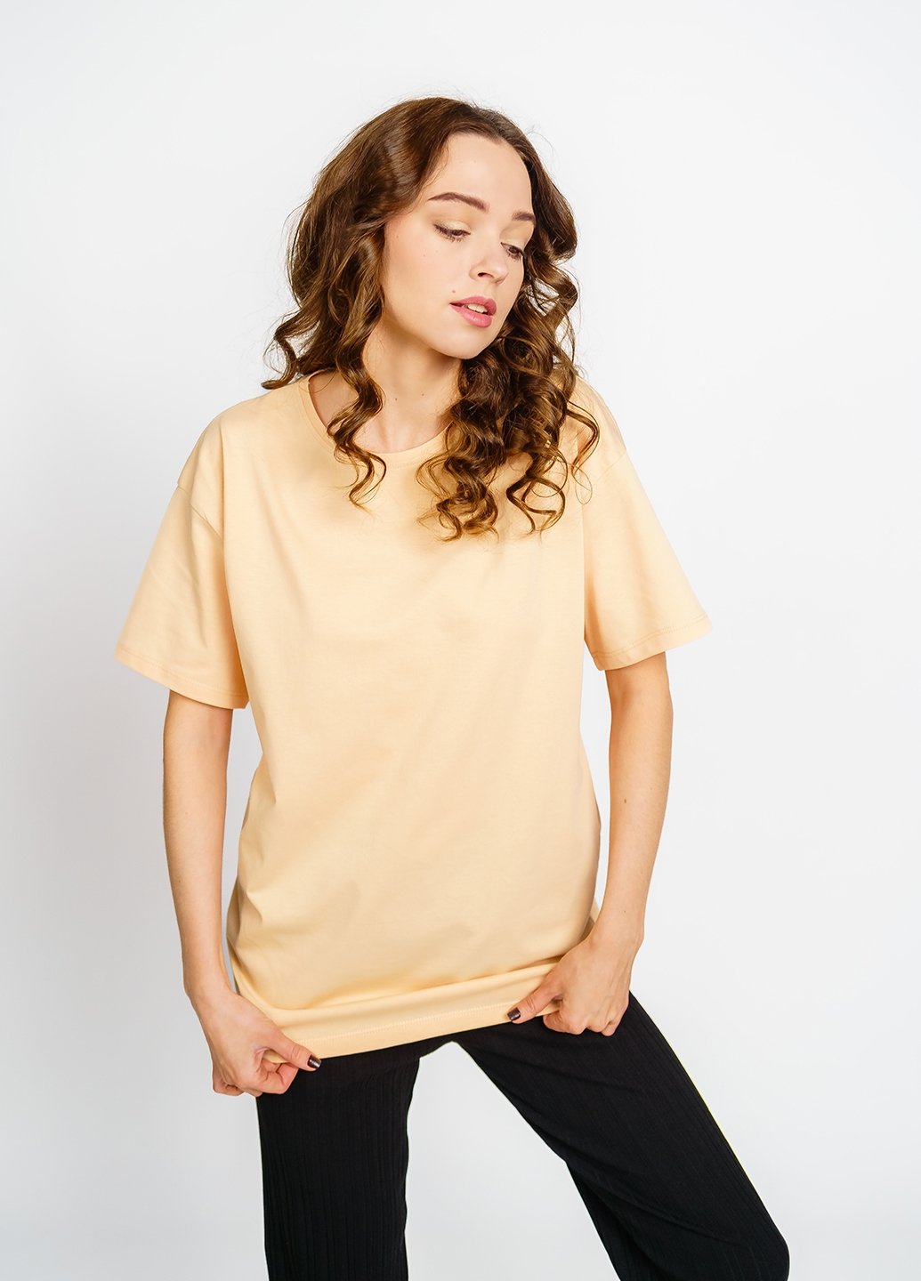 Ця футболка для жінок у стилі оверсайз стане відмінним доповненням до вашого гардеробу. Виготовлена з куліру (100% бавовна), вона забезпечить вам комфорт та приємні відчуття на шкірі. Футболка чудово поєднується з різними елементами гардеробу, такими як джинси, шорти чи спідниці, дозволяючи створювати різноманітні стильні образи. Вона також є чудовим вибором для домашнього одягу, забезпечуючи затишок і зручність у будь-якій ситуації.