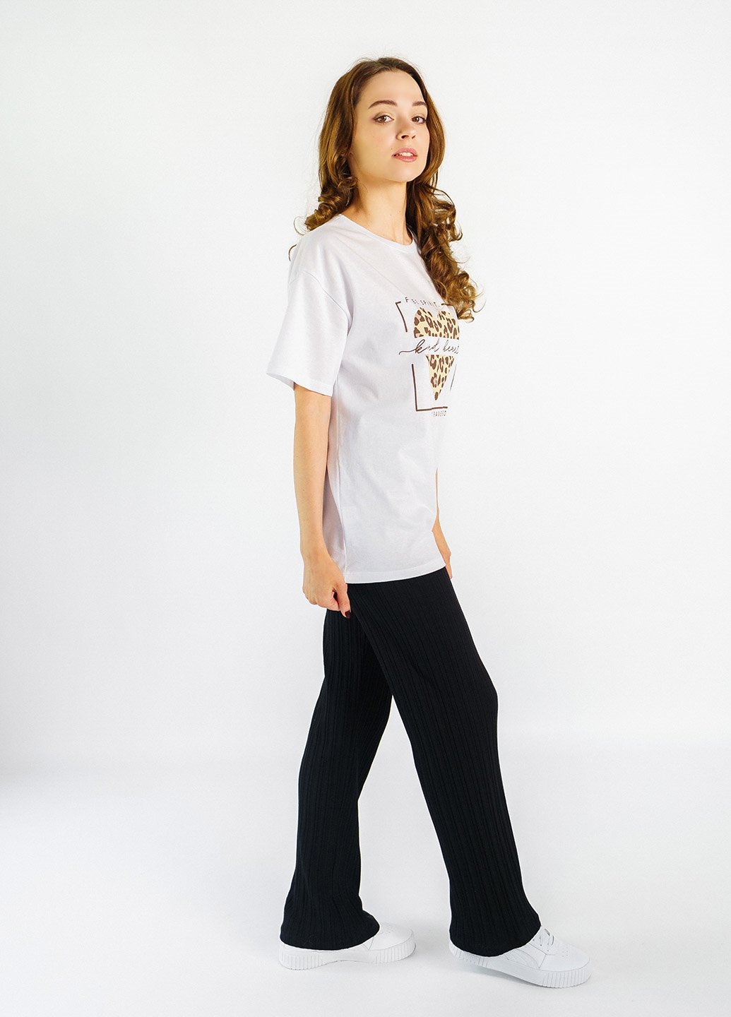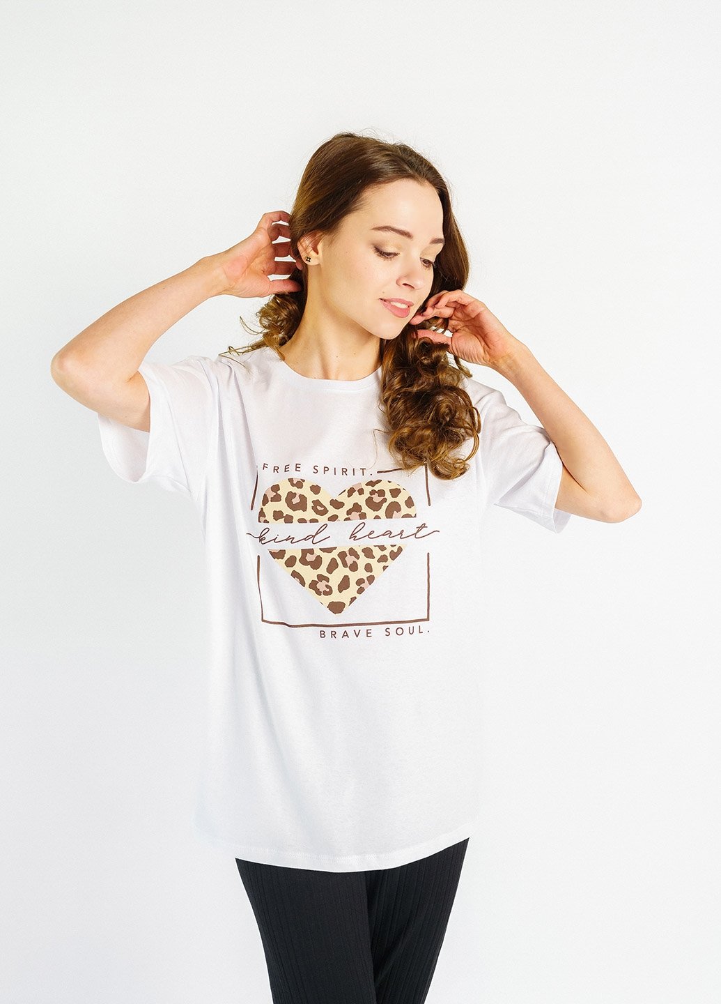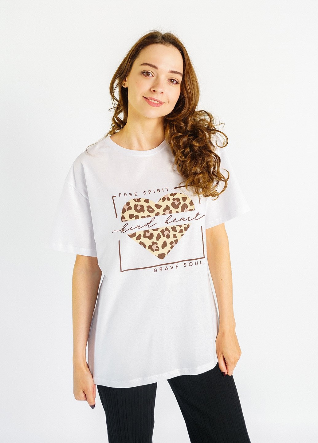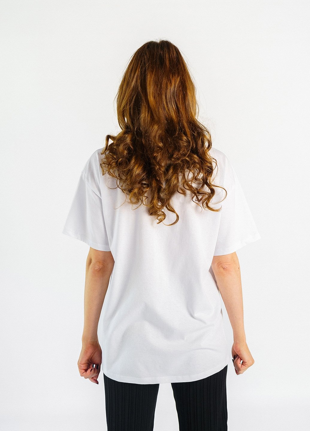 Ця футболка для жінок у стилі оверсайз стане відмінним доповненням до вашого гардеробу. Виготовлена з куліру (100% бавовна ), вона забезпечить вам комфорт та приємні відчуття на шкірі. Футболка чудово поєднується з різними елементами гардеробу, такими як джинси, шорти чи спідниці, дозволяючи створювати різноманітні стильні образи. Вона також є чудовим вибором для домашнього одягу, забезпечуючи затишок і зручність у будь-якій ситуації.