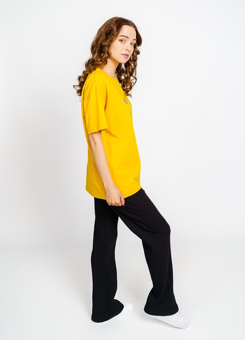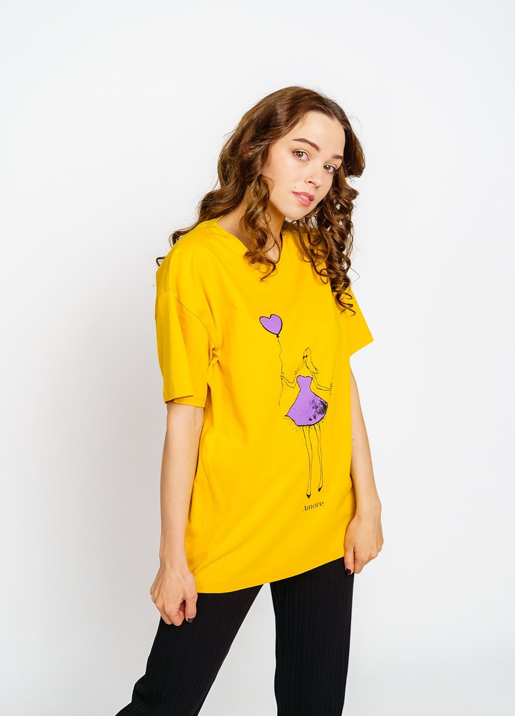 Ця футболка для жінок у стилі оверсайз стане відмінним доповненням до вашого гардеробу. Виготовлена з куліру (100% бавовна ), вона забезпечить вам комфорт та приємні відчуття на шкірі. Футболка чудово поєднується з різними елементами гардеробу, такими як джинси, шорти чи спідниці, дозволяючи створювати різноманітні стильні образи. Вона також є чудовим вибором для домашнього одягу, забезпечуючи затишок і зручність у будь-якій ситуації.
