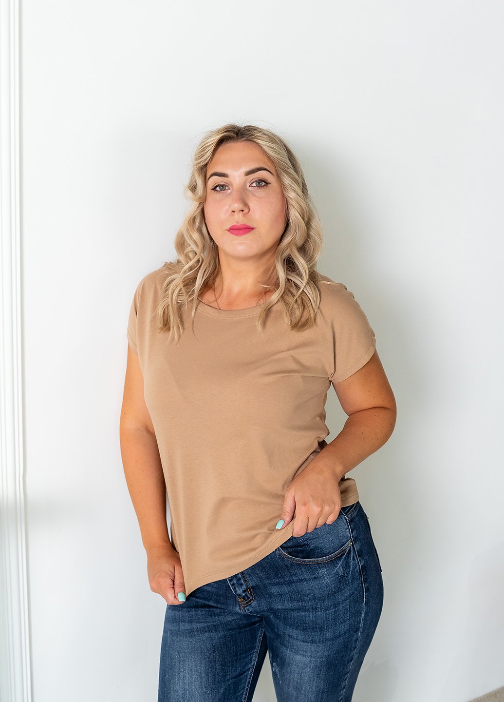 Ця футболка для жінок стане відмінним доповненням до вашого гардеробу. Виготовлена з стрейч куліру (95% бавовна 5% еластан), вона забезпечить вам комфорт та приємні відчуття на шкірі. Футболка чудово поєднується з різними елементами гардеробу, такими як джинси, шорти чи спідниці, дозволяючи створювати різноманітні стильні образи. Вона також є чудовим вибором для домашнього одягу, забезпечуючи затишок і зручність у будь-якій ситуації.