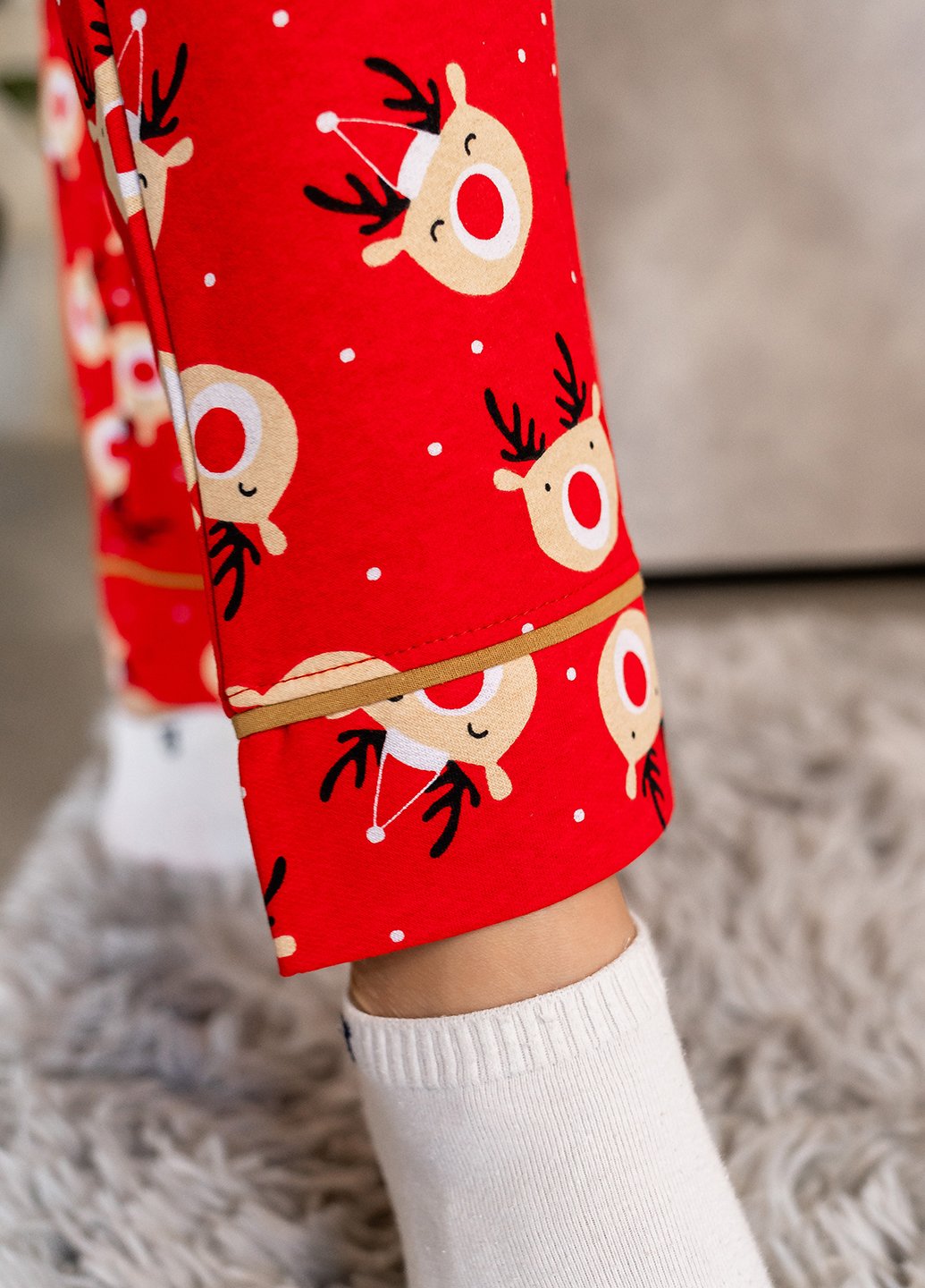 Тепла піжама з принтом “Веселі олені” виконана зі 100%-ї бавовни з начосом всередині! Її м’якість обгорне вас, ніби кіт, що вирішив дрімати на ваших колінах, а святковий принт гарантує гарний настрій!